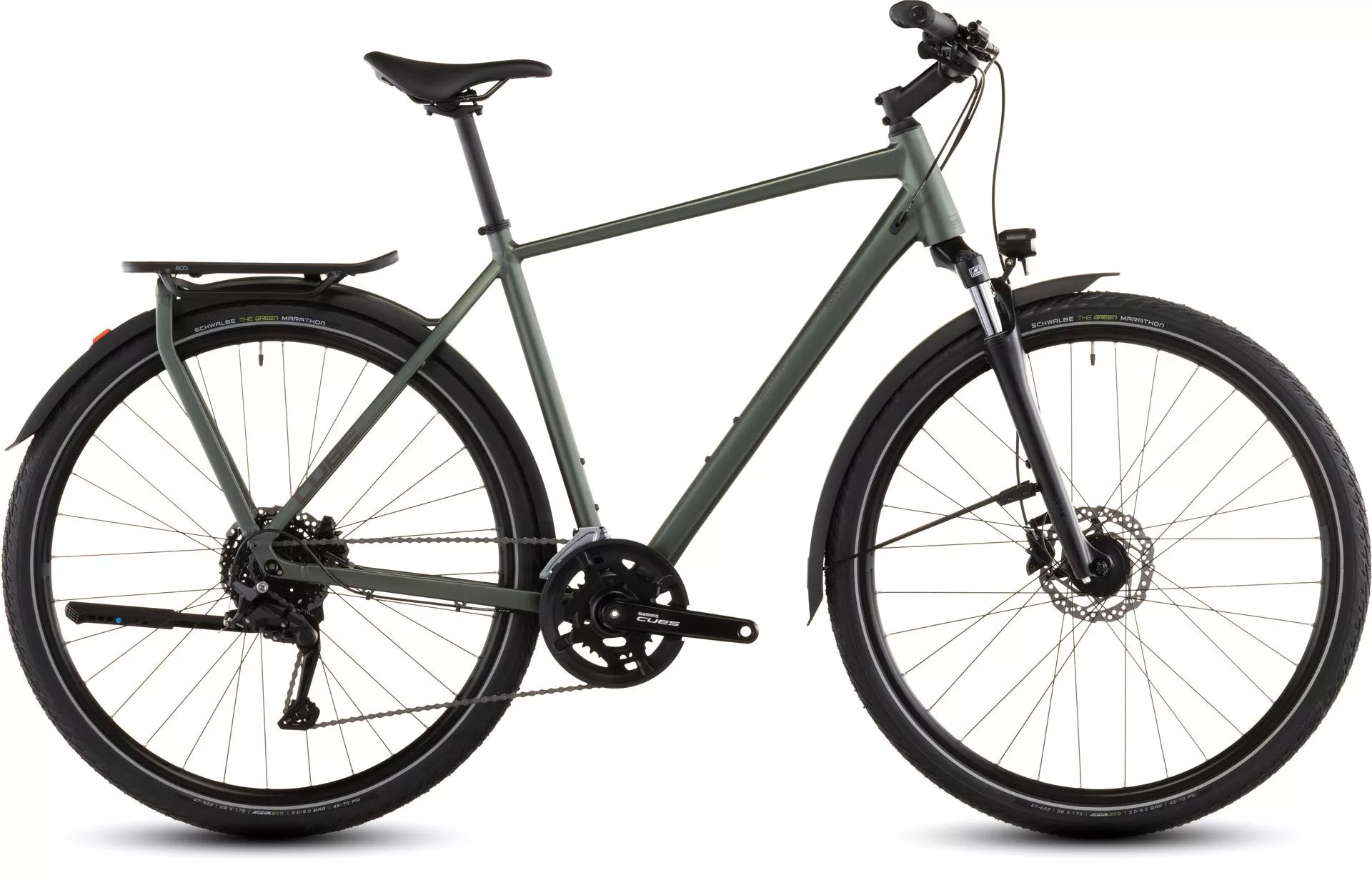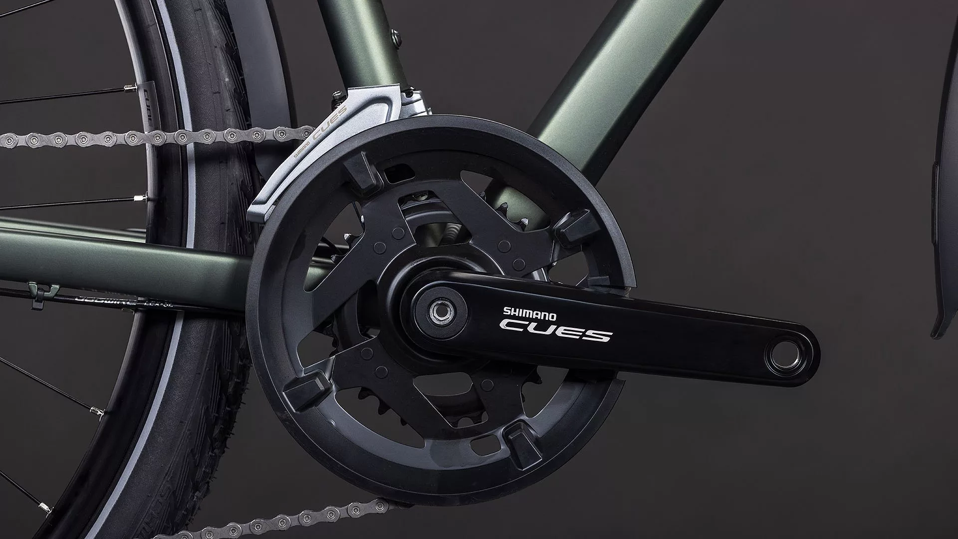VÁLTÓ: Shimano Cues váltórendszer – elöl Shimano Cues FD-U4010, hátul Shimano Cues RD-U4020-SGS, 9 sebességes kialakítással a könnyű és hatékony áttételváltásért.