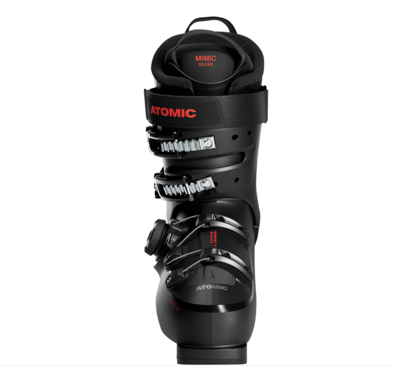 Az Atomic Prolite váza ott erős, ahol szükség van rá, miközben minden felesleges anyagot elhagy. Ettől a cipő egész nap könnyű marad, mégis hatékonyan viszi át az erőt a sílécekre.